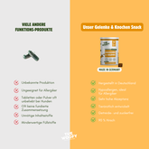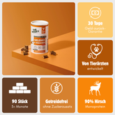 Hirsch 90% (Monoprotein), Erbsenprotein, Lignocellulose, Kolostrum, Spirulina, Grünlippmuschelextrakt, Methylsulfonylmethan (MSM)